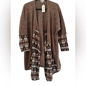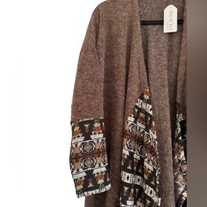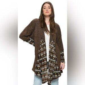 Yak & Yeti Brown Knit Tribal Draped Open Front Cardigan Size Small/Medium
