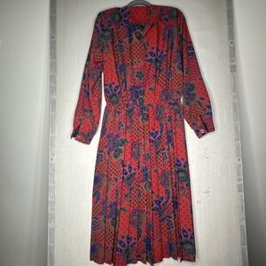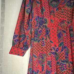 Vintage Serben Red Paisley Print Modest Long Sleeve Dress | Size: 12