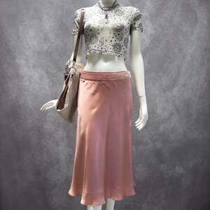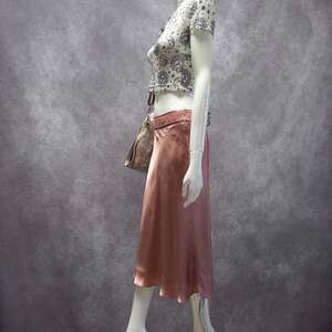 Vintage 100% silk satin midi skirt, rose pink, Size 6