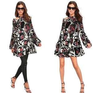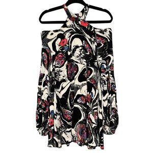 Free People Drift Away High Neck Balloon Sleeve Cold Shoulder Artsy Tunic Shirt