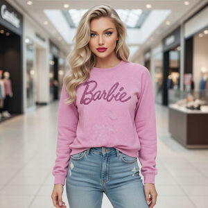 Barbie Medium Pink White Tie Dye Pullover Crewneck Sweater Glitter Barbie