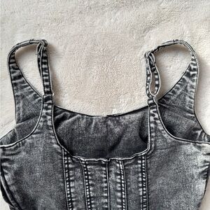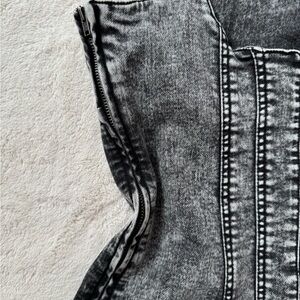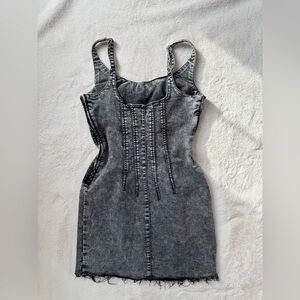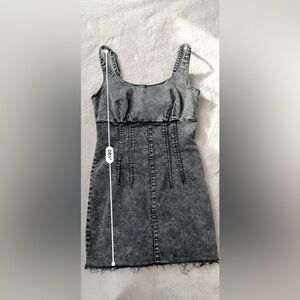 Fun gray denim dress with a sleeveless design. Perfect for casual outings. Bought on a whim for an impromptu concert outing. I hemmed the bottom of the dress for a more rugged look. Super stretchy material and comfortable!