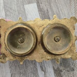 Antique Brass Double Inkwell Ornate Victorian Glass Inserts