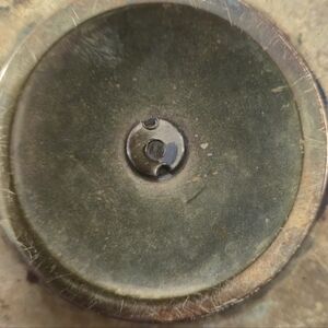 Condition: Antique. One glass insert shows a small chip on the top rim. Interior staining from black ink is present, adding to the authentic story of the piece. Brass is structurally sound and wonderfully detailed.