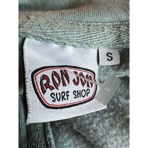 Keywords: Ron Jon, women's pullover, green pullover, casual wear, fleece pullover, beach style, surf theme, embroidered patch, 1/4 zip, fall fashion, machine washable, pre-owned, cotton blend, polyester, solid color.