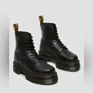 😍Dr.Martens Black Chunky Combat Boots Audrick Nappa Leather Platform Ankle Boots