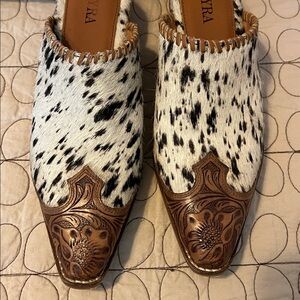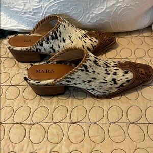 Myra cowhide mules handmade mules women’s size 8. Excellent used condition. Pet and smoke free home.