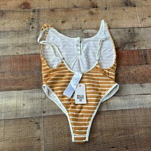 Billabong honey daze mustard yellow striped one piece swimsuit -S