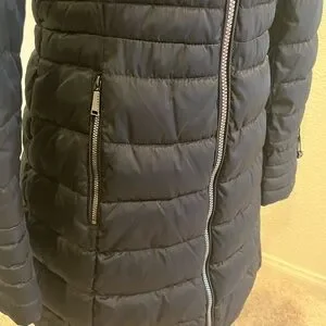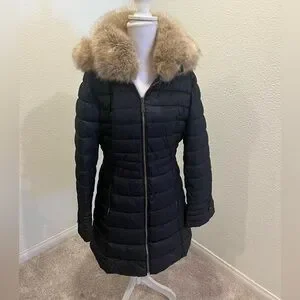 Chic black puffer coat with a plush faux fur collar. Ideal for cold weather. Removable hood. Like new, only worn once.
