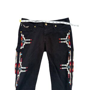 Robins Jean Embroidered Black Skinny Jeans Aztec Chapa Y2k Size 28
