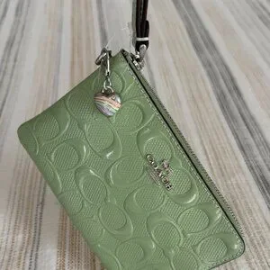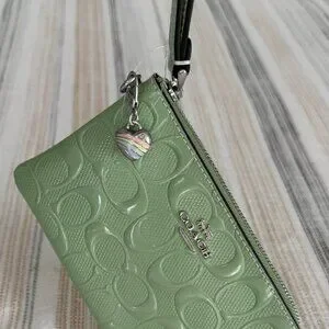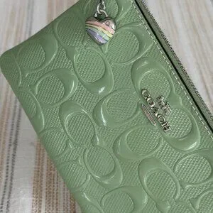 NWT Coach Zip Around Wristlet Wallet Signature w/ Heart Charm Spring Beautiful
