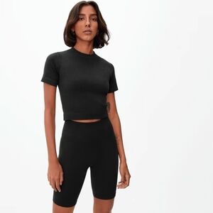 Everlane Seamless Tee Black Shirt Short Sleeve Compression Crop Top NEW