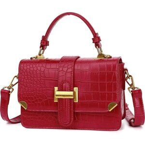 LL LOPPOP Small Classy Leather Crossbody Purse Handle Satchel Handbag Dark Red