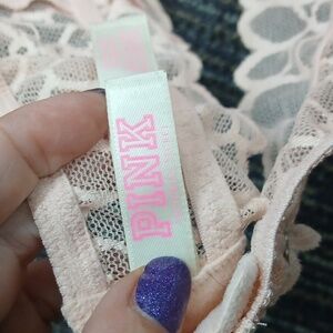 Pink Victoria’s Secret White Lace Halter Top Bra Bralette Small AA-C