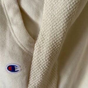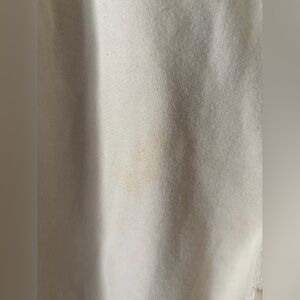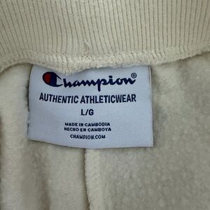 Women’s Cream Colored Champion Joggers Size Large. Inseam 27.5”. There is a mark I noticed when taking pics - see last picture- but not noticeable when on . Also hasn’t been treated . Smoke free pet friendly/ pet friendly home