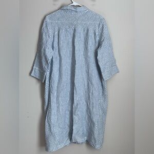 Lintico Madison 100% Linen Shirt Dress Womens Size M Blue Stripe Lagenlook Boho