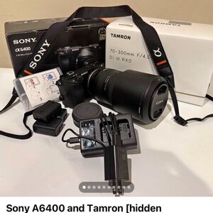 Capture stunning photos and videos with the Sony A6400 mirrorless camera. This sleek black camera, paired with a versatile Tamron lens, offers exceptional image quality and performance. Perfect for both amateur and professional photographers.