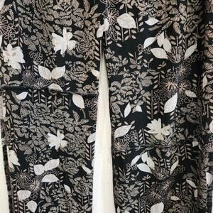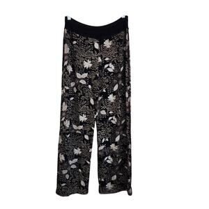Chico's Travelers Black Tan Wide Leg Pants Lightweight Floral Drawstring Medium
