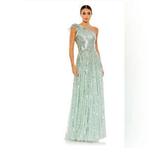 Mac Duggal, Sequined One Shoulder Flutter Sleeve Gown, Pistachio, Size 10, NWT.
