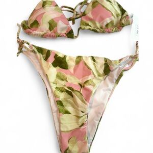 Envya Pink and Green Leaf Bikini Set