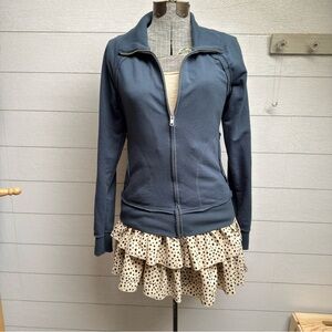 Kavio Women's Cotton Blend Jewel Toned Blue Zip Up Jacket - Size M