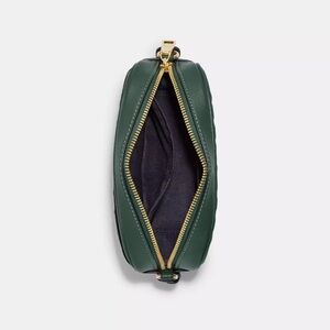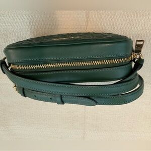 Stylish Coach crossbody with embossed design. Rich green hue. Perfect for any outfit.