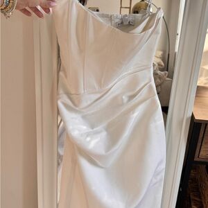 Chic strapless design by Shona Joy. Elegant white maxi dress. Perfect for special occasions.
