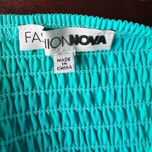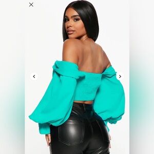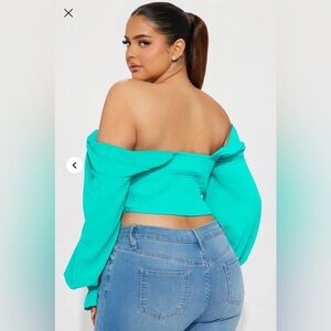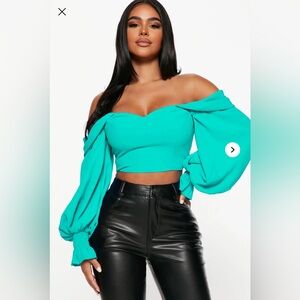 Fashion Nova Vibrant Teal Off-Shoulder Crop Top
