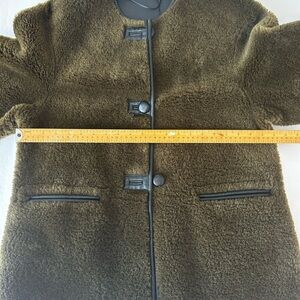 Cozy and stylish shearling jacket. Features button closure and front pockets. Ideal for cool weather. Fit oversized a very generous small.