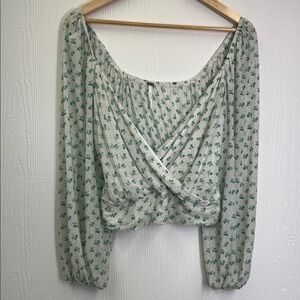 Free People - Cream Combo Sweetie Pie Floral Sheer Wrap Long Sleeve Blouse Small