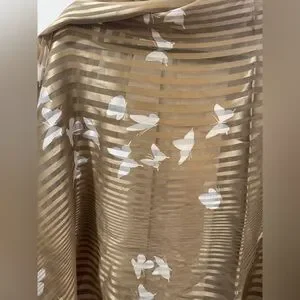 • Design: A whimsical array of multicolored butterflies and floral design set against a warm gold and tan striped background.