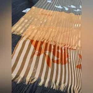 • Finish: Hand-finished eyelash fringe edges (typical of Gucci stoles/wraps of this era).