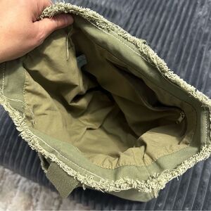 Life is Good Canvas Tote Bag Frayed Edge w/ Heart Green. Please see photos for measurements and indications of use.