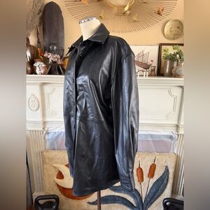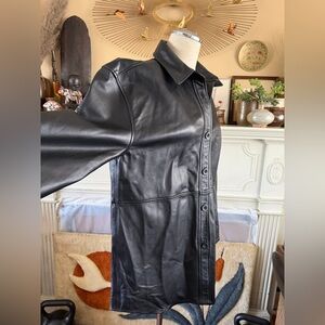 Part shirt, part jacket, 100% top grain leather. This oversized, relaxed-fitting shacket is your perfect go-to style as the temperature starts to drop. With dropped shoulders, adjustable button closure cuffs, and a rounded hem, this jacket is made for layering and goes with just about everything. Buttery-soft and incredibly stylish, you'll be happy wearing it again and again.