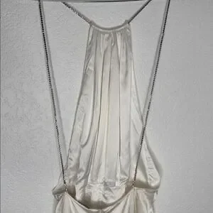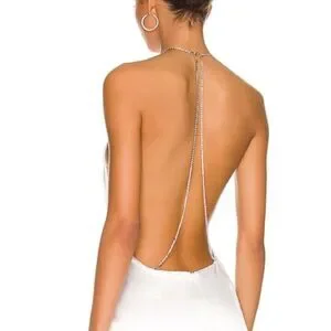 • Open back with rhinestone chain detail