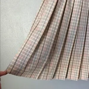 Stylish plaid pleated skirt. Featuring a classic design in soft pink and cream tones, it's perfect for any occasion.