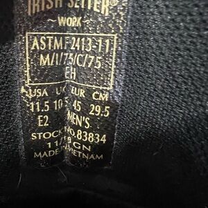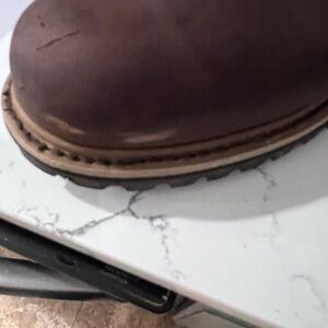 Men’s Irish Setter by Red Wing brown leather work boots with steel toe and ultra dry waterproofing. Designed for electrical hazard protection these durable boots offer long, lasting comfort, and performance. Ideal for construction sites. These boots have been worn very little shows a few scuffs on the toes as pictured. I bought these for my son and he wore them just a few times and did not need them anymore. The boots are still in good condition and have plenty of life left in them.