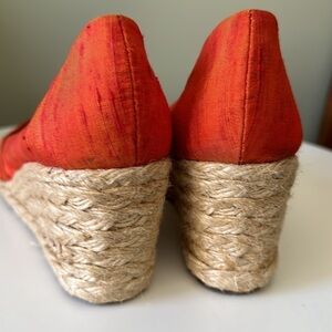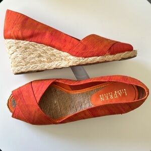 Lauren Ralph Lauren Silk Open Toe Espadrille Iridescent Orange & Gold Size 8.5