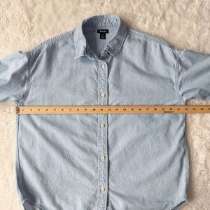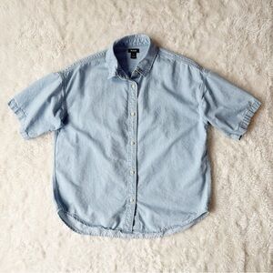 ROOTS Woman Chambray Relaxed Fit Button Down Short Sleeve Shirt SMALL Classic