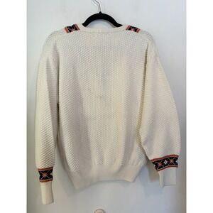 Vintage Lamode V Neck Sweater Argyle Trim Mens Large Waffle Knit Ivory Preppy