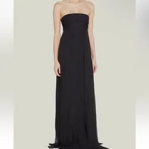 Oscar De La Renta Black Drape Strapless Silk Column Gown Dress