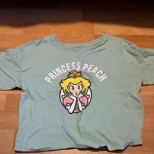 This adorable Princess Peach tee is perfect for your little one's adventures. The light blue color and playful design make it a fun addition to any wardrobe.