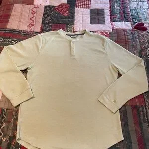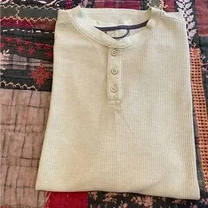 Soft waffle knit fabric. Classic Henley design. Ideal for layering or solo wear. Gently worn.