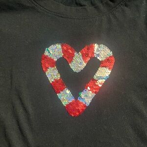 Black Long Sleeve Kids Shirt with Sequin Heart Design