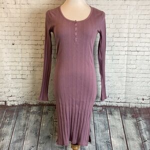 Pact Rib-Fit Henley Dress Small Lavender Purple Minimalist Granola Sustainable.