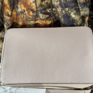 Chic Michael Kors crossbody in blush. Features sleek design and gold accents. Perfect for versatile styling.