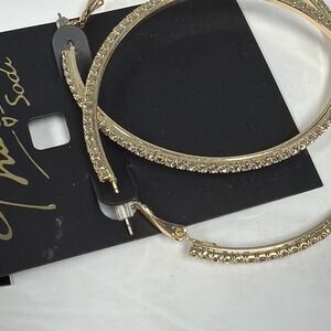 The THALIA SODI Extra Large 2.4" Gold-Tone Crystal Pavé Marquise Hoop Earrings are stunning earrings that feature a marquise shape design adorned with sparkling crystal pavé. The earrings have a hoop style closure and are made of mixed metals, specifically gold in color. They are perfect for adding a touch of glamour and sophistication to any outfit, making them a stylish accessory for any occasion.