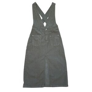 Zara Olive Green Corduroy Pinafore Midi Dress Cross Back Straps XS