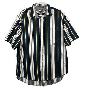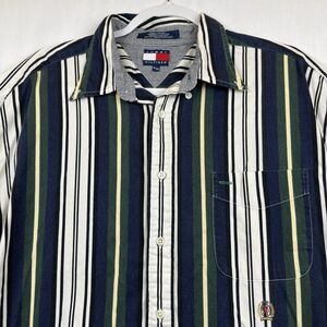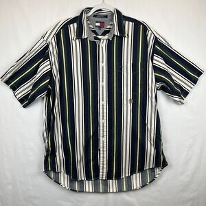 Vintage 90s Tommy Hilfiger Men's Shirt XL SS Button Up Crest Stripes Preppy Logo