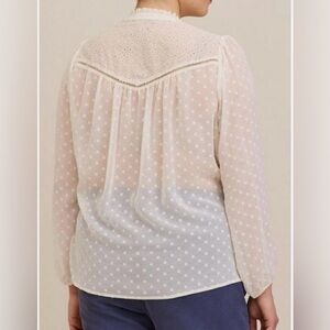 romantic blouse, chiffon top, clip dot blouse, lace trim top, torrid blouse, plus size blouse, feminine workwear, airy white top, cottagecore